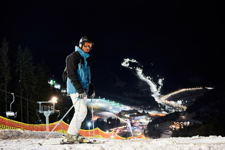 Лыжи доступны для аренды непосредственно у трассы).